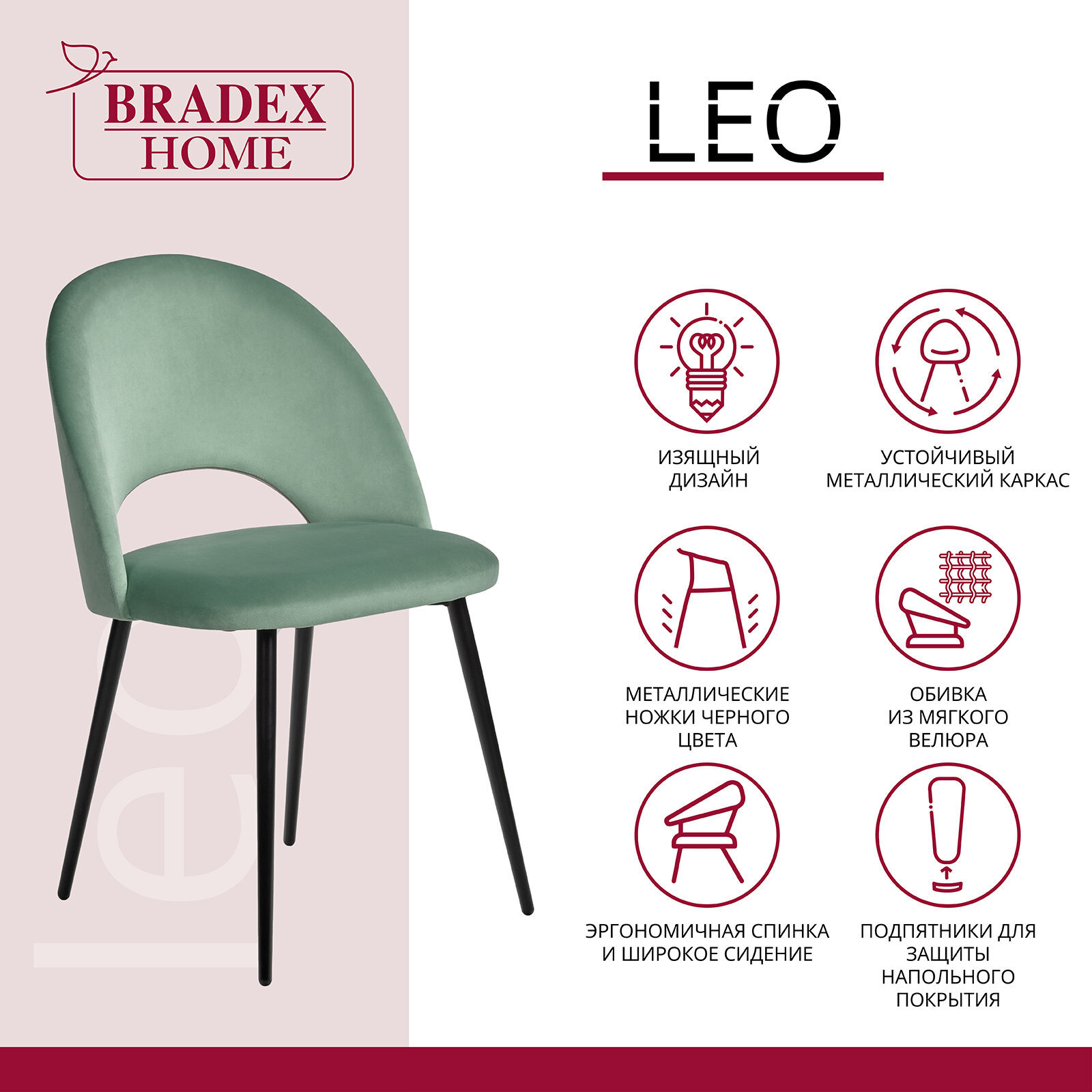 Стул Leo светло-бирюзовый информация: