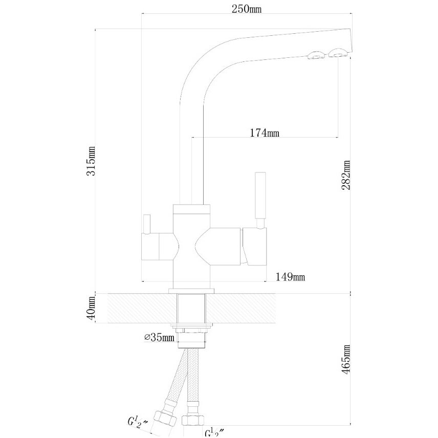 Смеситель для кухни с подключением к фильтру с питьевой водой из нержавеющей стали SUS304 Calorie CAL50116-3