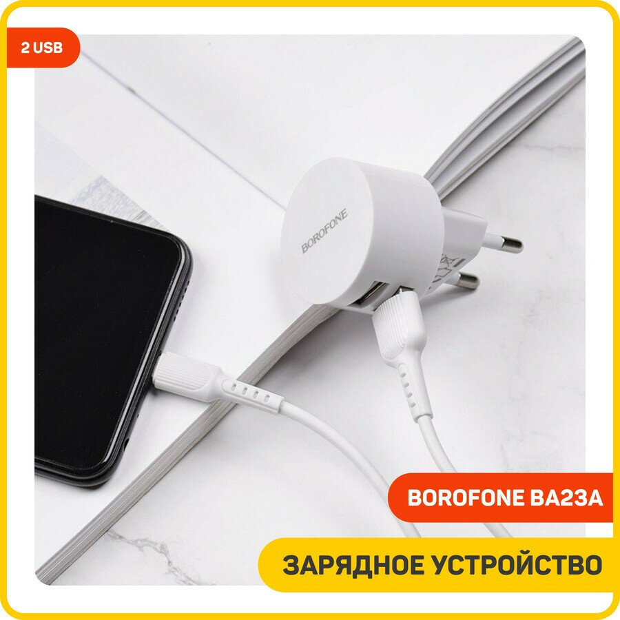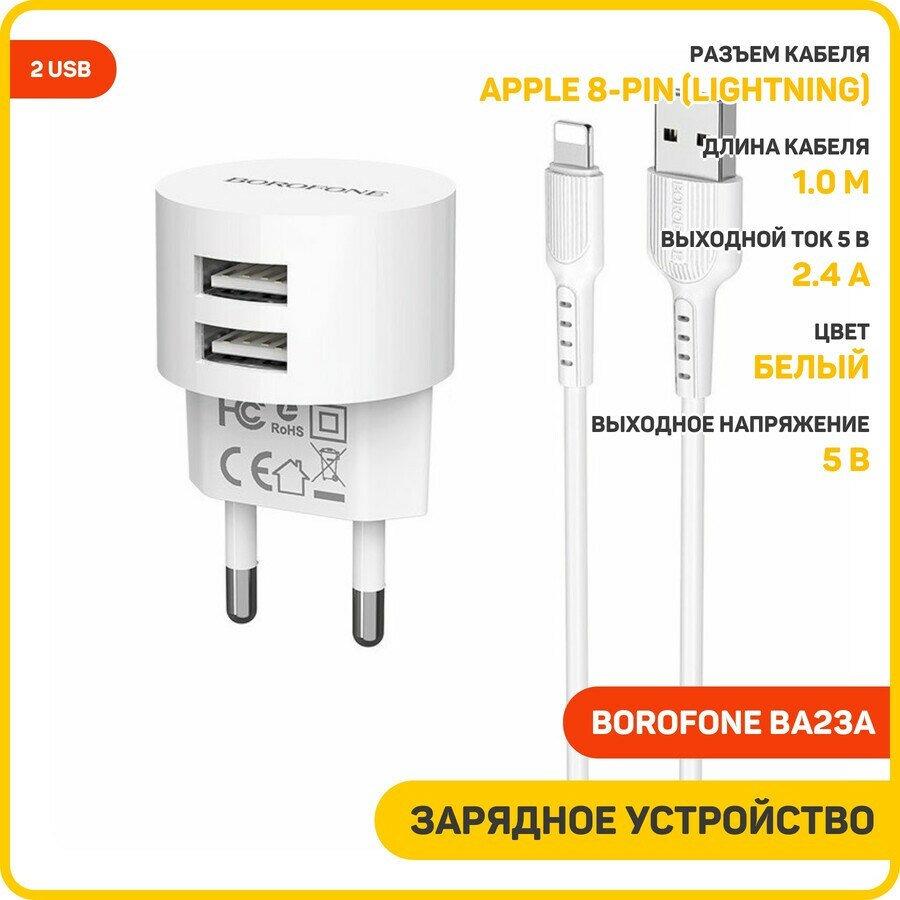 Сетевое зарядное устройство (СЗУ) Borofone BA23A (2 USB) + кабель Lightning, 2.4 А, белый информация: