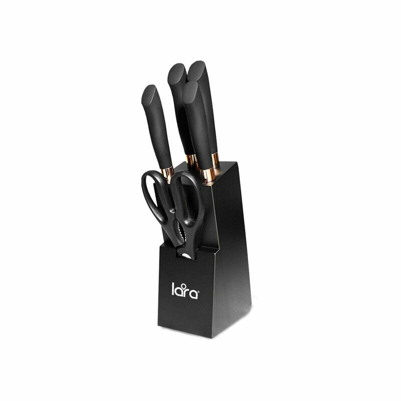 Набор ножей LARA LR05-55, 6 предметов: Подставка (сосна) +4 ножа (Soft touch, мед. больстер) +ножницы
