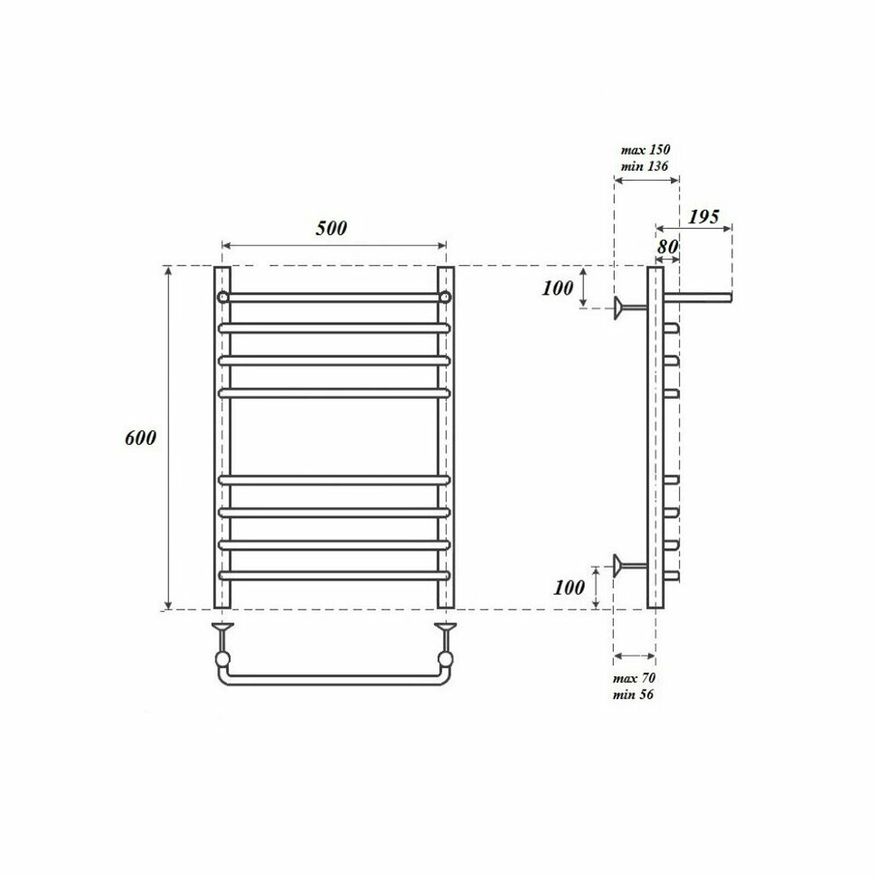 Электрический полотенцесушитель POINT PN09158SE П12 500x800