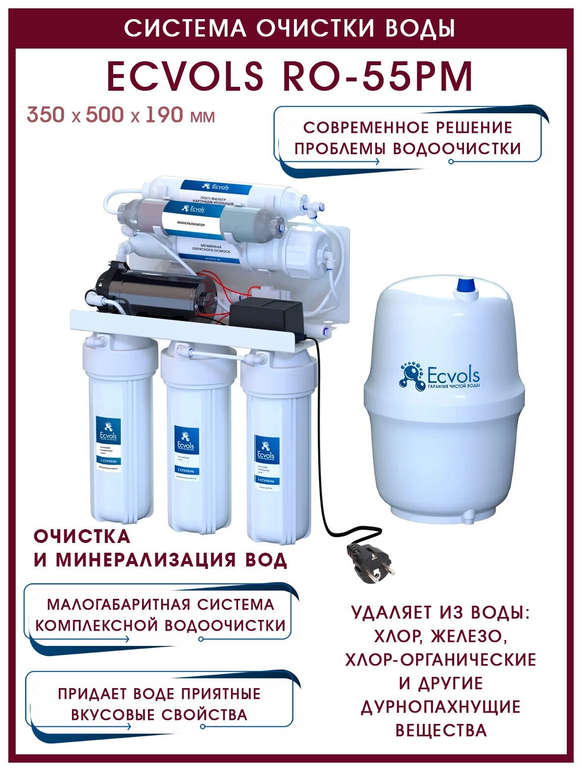 Ecvols Обратный осмос RO-55PM, 6 ступеней очистки, с помпой и минерализатором, бак 10л 00.00006786 информация:
