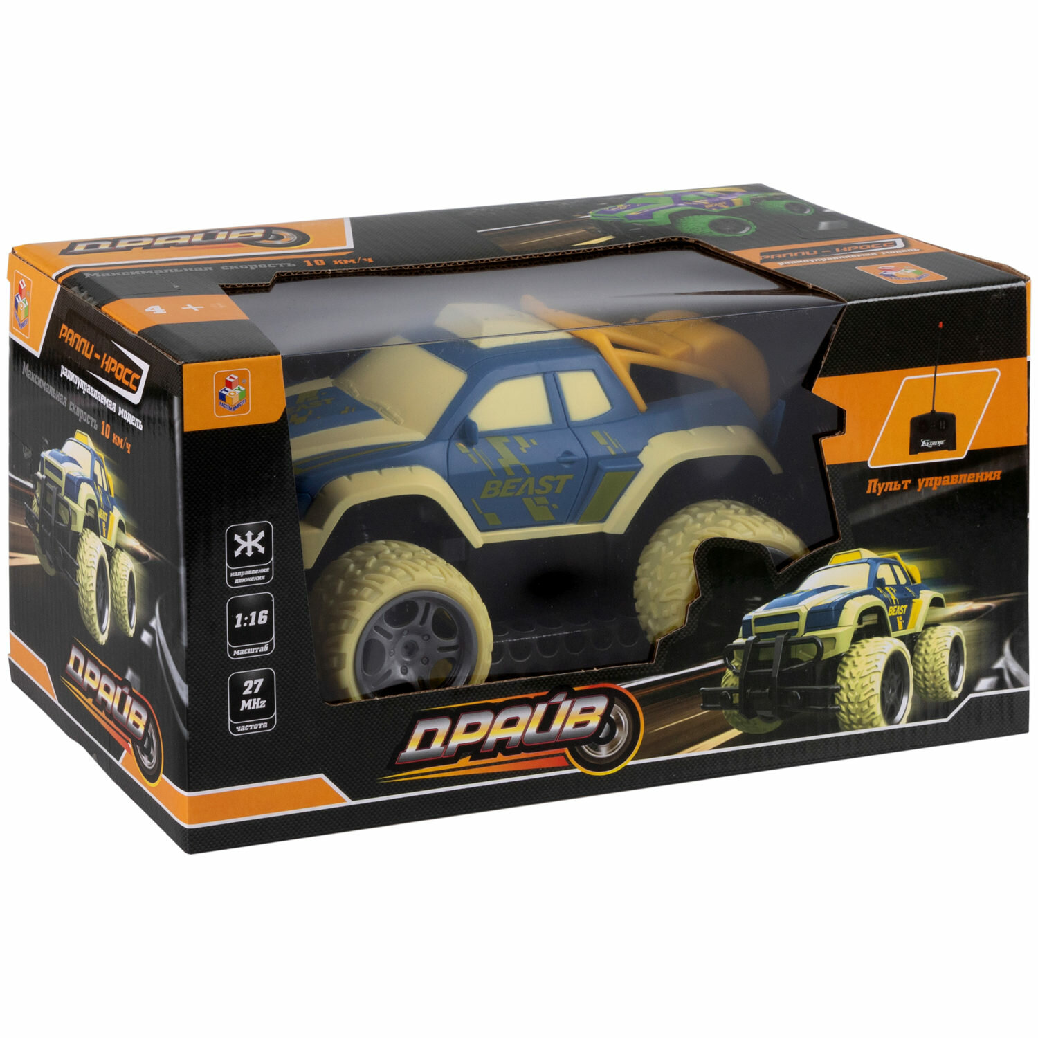 1toy Драйв Внедорожник на радиоуправлении, масштаб 1:18, 27 МГц, размер машинки 21 см, 4 канала: движение вперед/назад/влево/вправо, на батарейках, бе