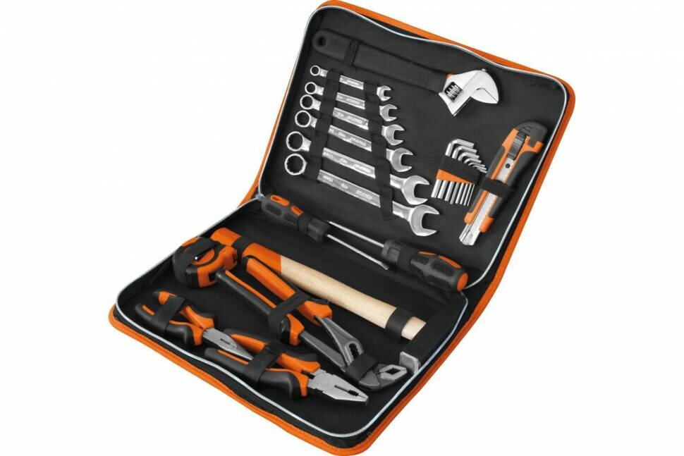 | Ручной инструмент подробно | пассатижи - 180 мм;тонкогубцы - 150 мм; ключ разводной - 255 мм, клещи переставные - 255 мм |