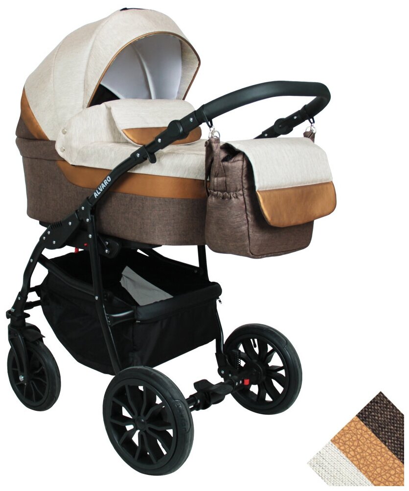 10 цен на Коляска 3в1 Alis ALVARO F (Al 06) (Al 06 (коричневый+св.бежевый +золотая кожа))