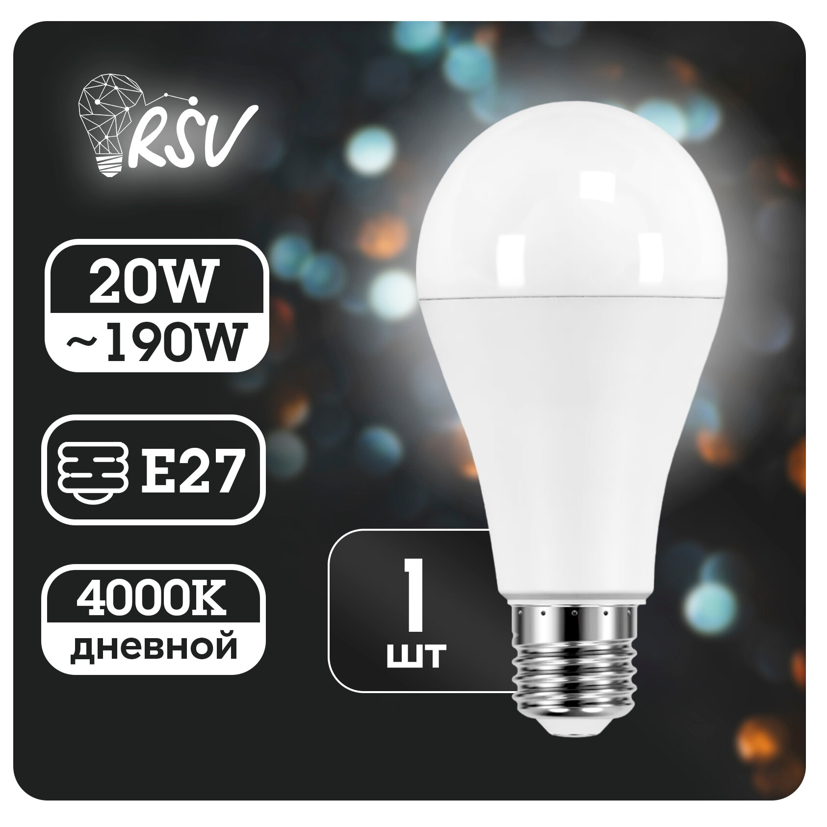Светодиодная лампа RSV RSV-A65-20W-4000K-E27 P информация: