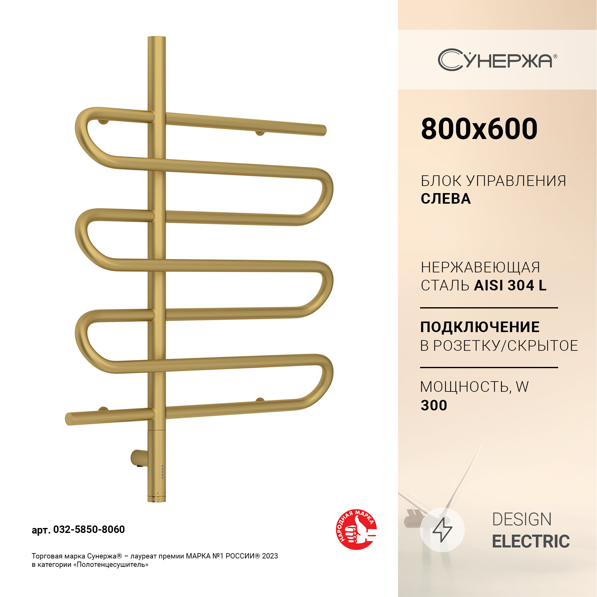 Полотенцесушитель электрический Сунержа Эпатаж 3.0 800х600 МЭМ левый Матовое золото информация: