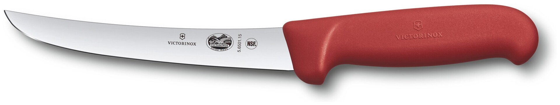 Нож кухонный Victorinox Fibrox (5.6501.15) стальной обвалочный лезв.150мм прямая заточка красный информация: