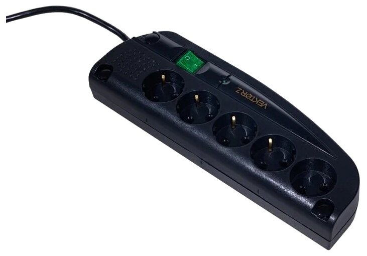 Сетевой фильтр VEKTOR Z, 5 розеток, с/з, 4А / 3500 Вт черный 5 м