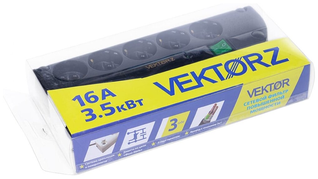 Сетевые фильтры Vektor Сетевой фильтр Vektor Z 3.5 кВт черный 5м (для бытовой техники,повышенная мощность) информация: