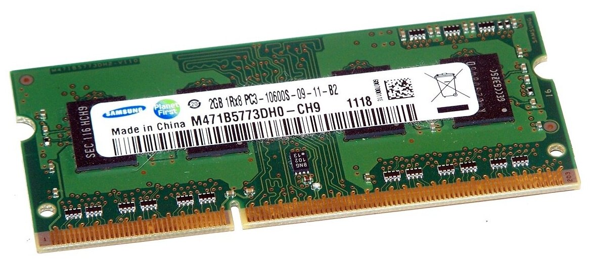 Оперативная память Samsung 2 ГБ DDR3 1333 МГц SODIMM CL9 M471B5773DH0-CH9 информация: