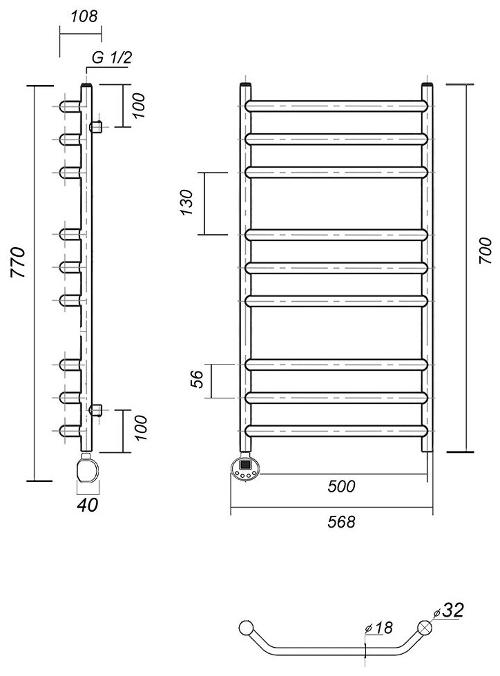 TERMINUS Полотенцесушитель электрический Terminus Хендрикс П6 500x596, ТЭН HT-1 300W, левый/правый