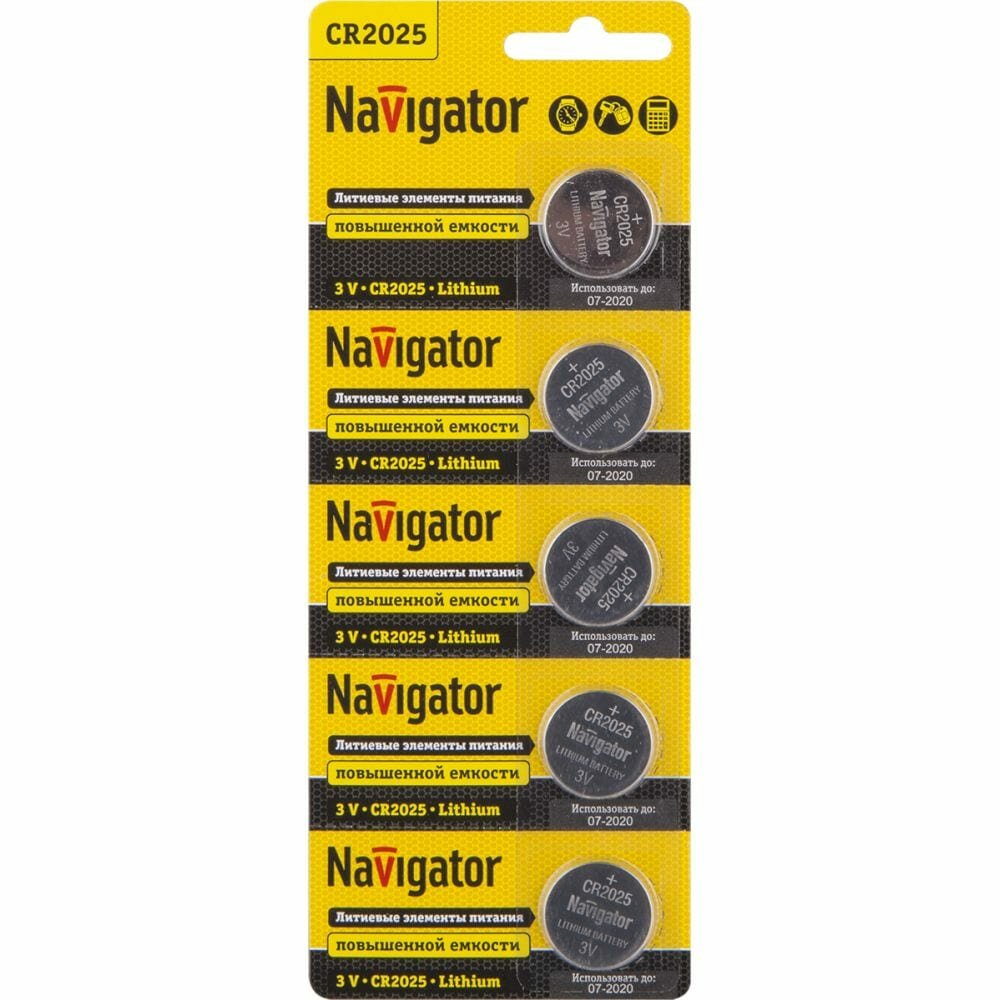 10 цен на Элемент питания литиевый CR2025 94 764 NBT-CR2025-BP5 (блист.5шт) Navigator 94764