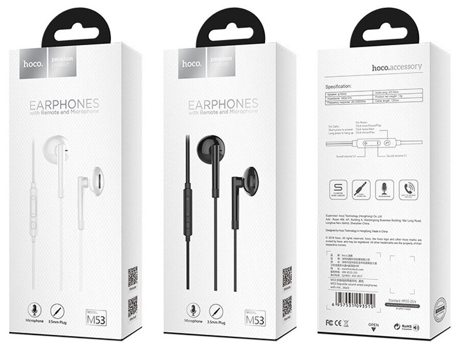 10 цен на Наушники Hoco M53 Exquisite, Jack 3.5mm, 1.2 м, Черный, контроллер с микрофоном