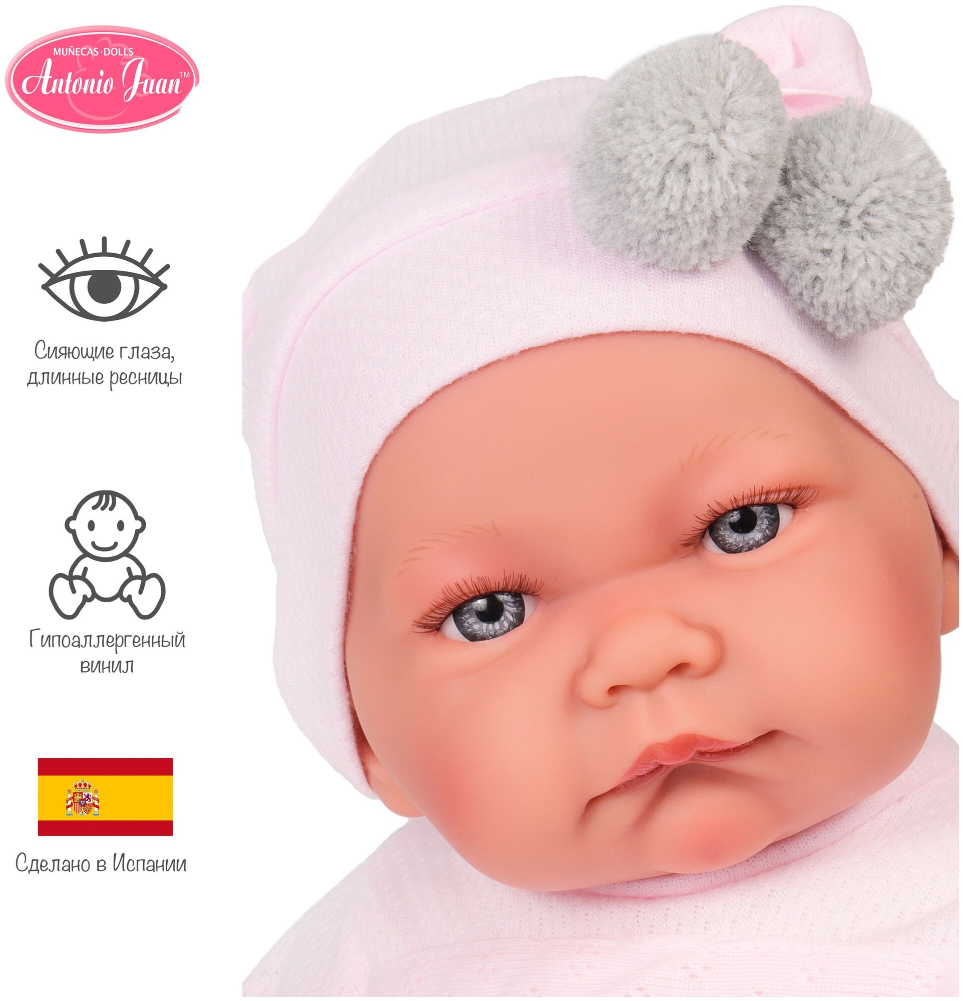 Кукла Antonio Juan Малышка в розовой кофте с капюшоом, арт. 12237