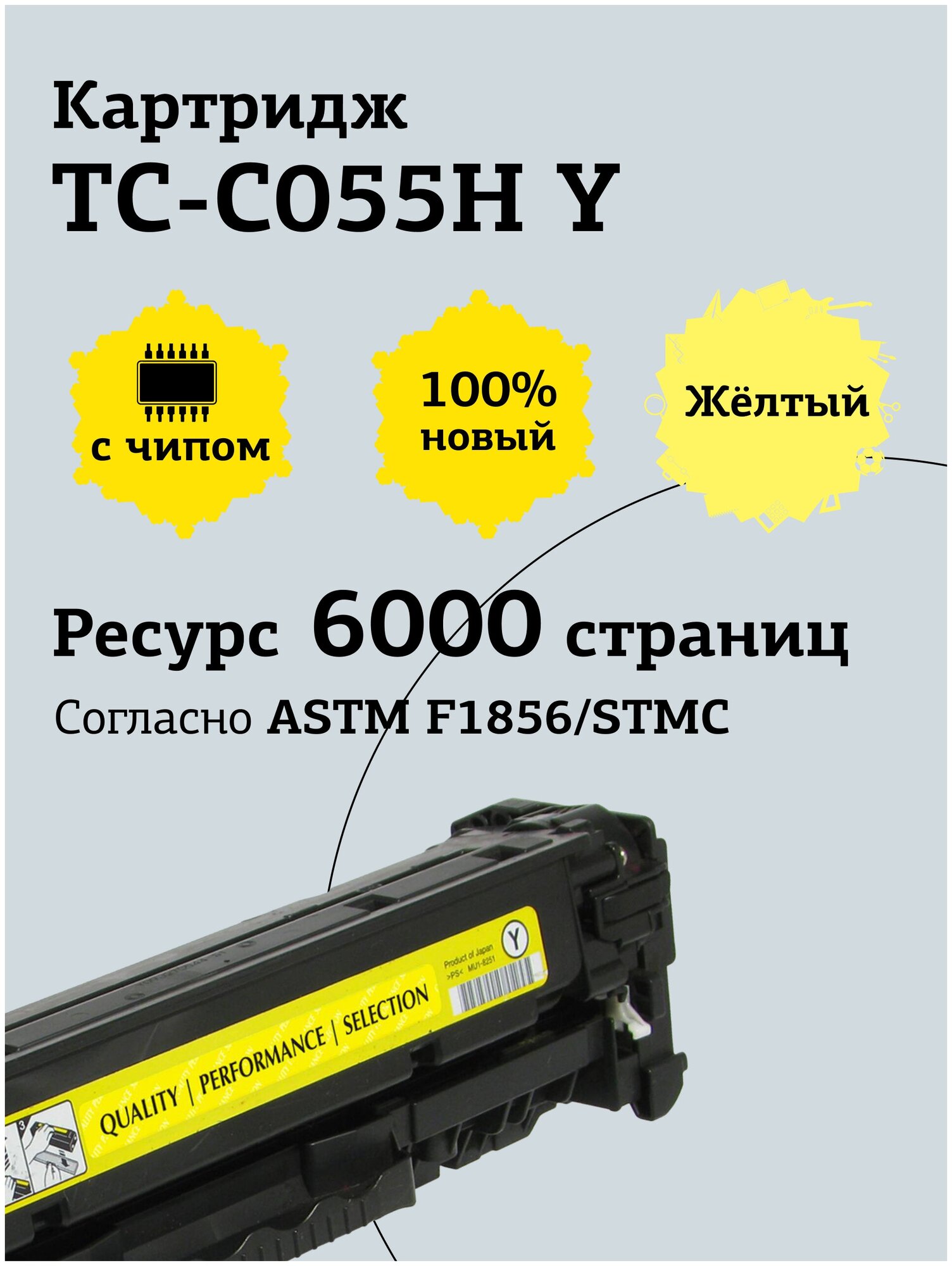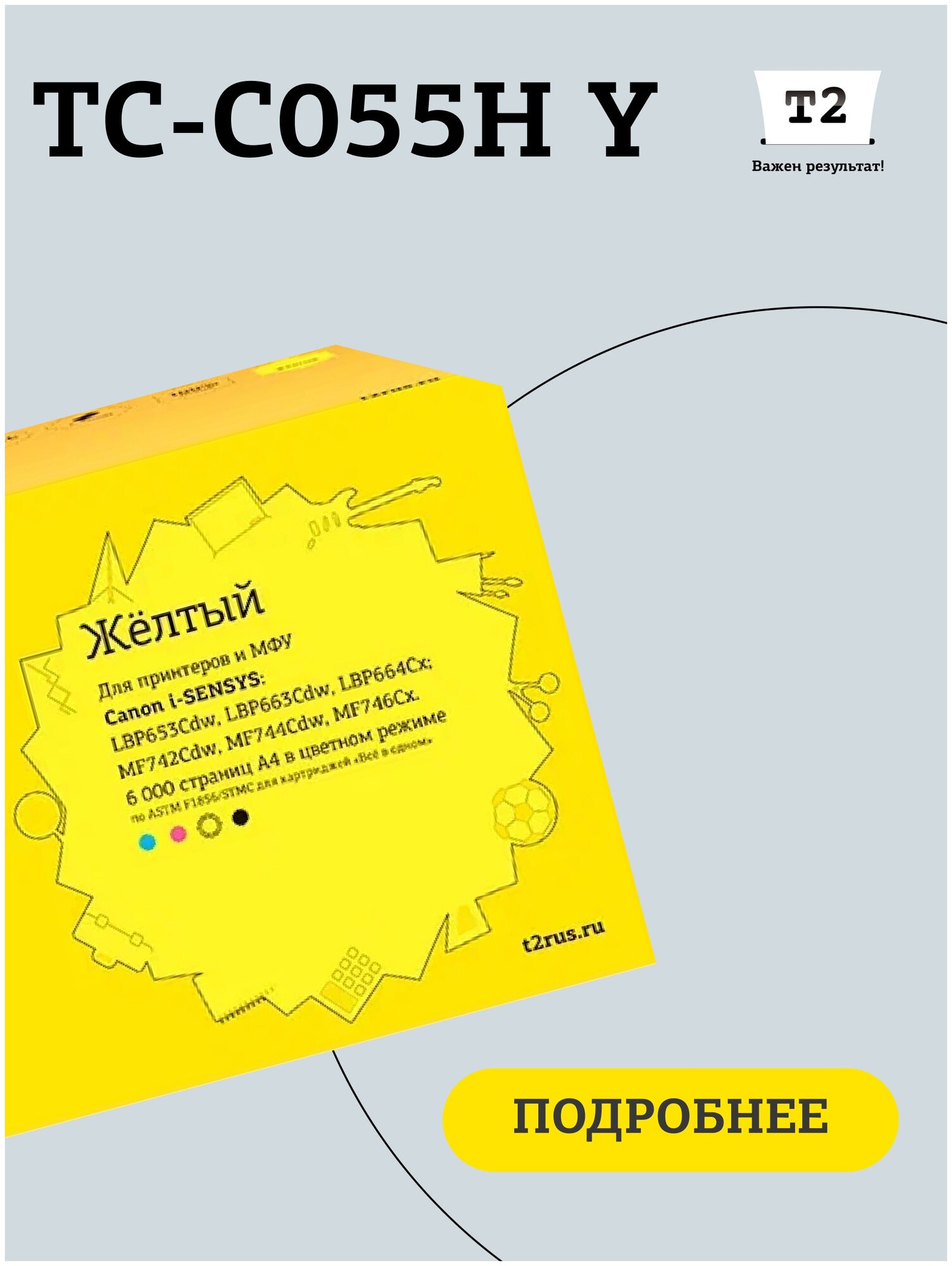 T2 Cartridge 055H Y/3017C002 Картридж TC-C055H Y для Canon i-SENSYS LBP663/664/MF742/744 (6000 стр.) Желтый, с чипом информация: