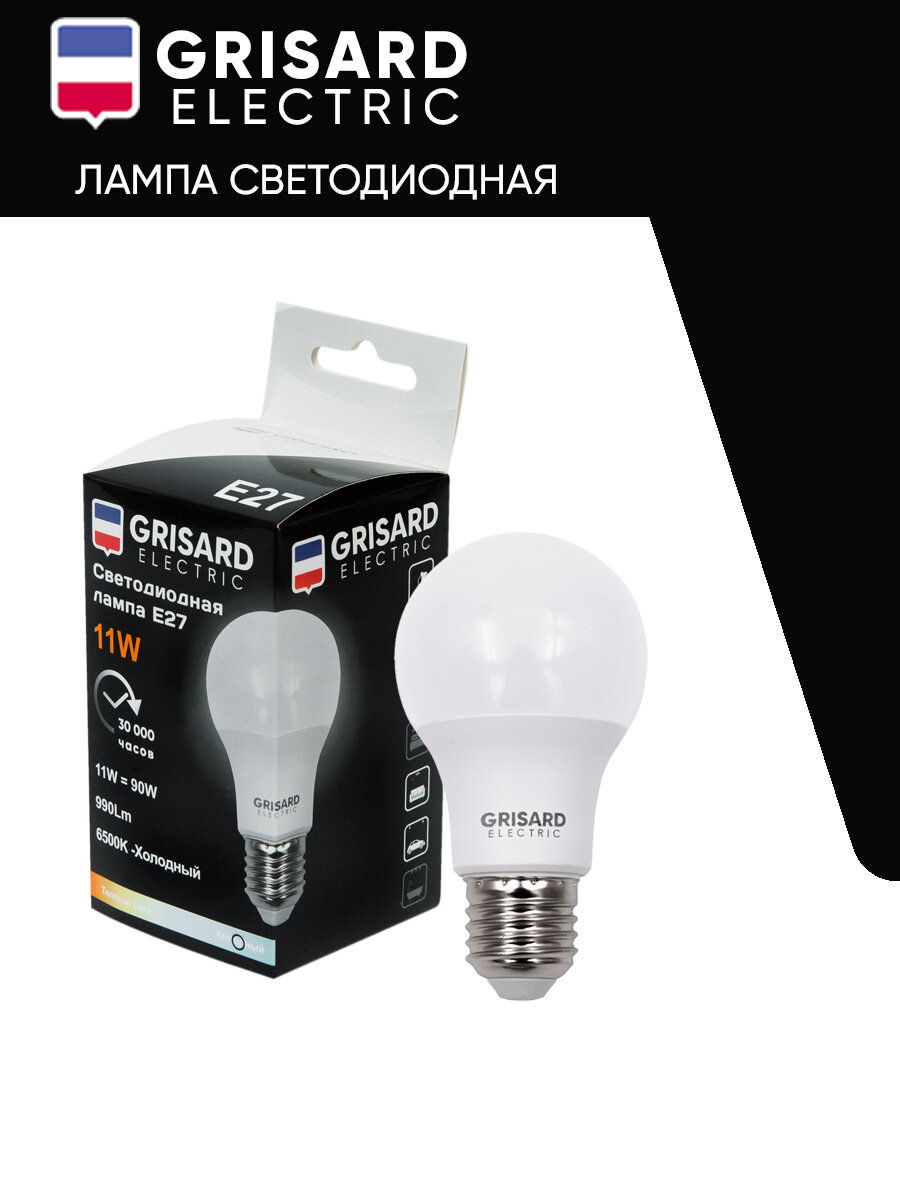 Светодиодная лампа Grisard Electric шар A60 Е27 11Вт 6500К 220В GRE-002-0015(1) информация: