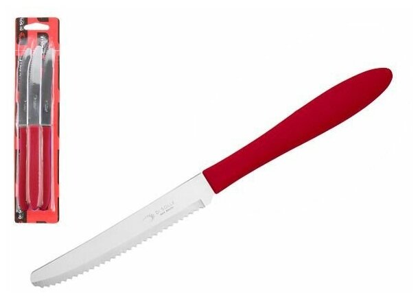 Набор ножей столовых, 3шт, серия PRISMA, красные, DI SOLLE (Супер цена! Длина: 210 мм, длина лезвия: 104 мм, толщина: 0,8 мм. Прочная пластиковая руч 685 ₽