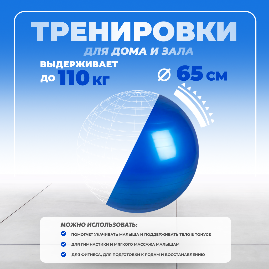 10 цен на Фитбол Solmax, гимнастический, синий 65 см, без насоса