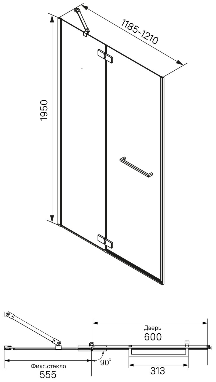 Душевая дверь Iddis Slide распашная черный алюминиевый профиль 120х195 см SLI6BH2i69