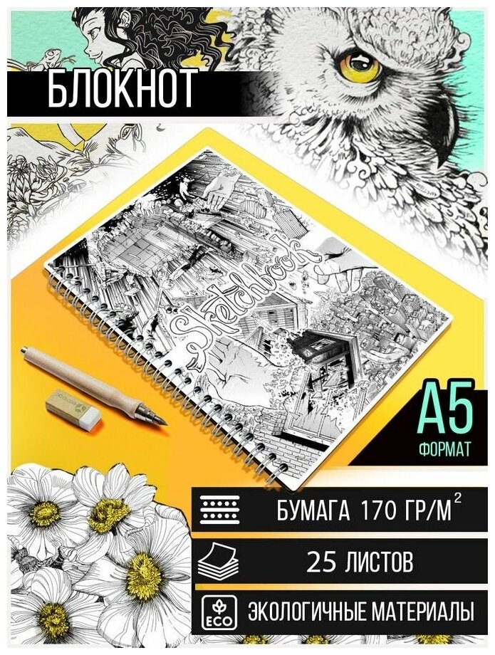 10 цен на Скетчбук, Блокнот, A5 25 листов 170гр/м2 манга - 327