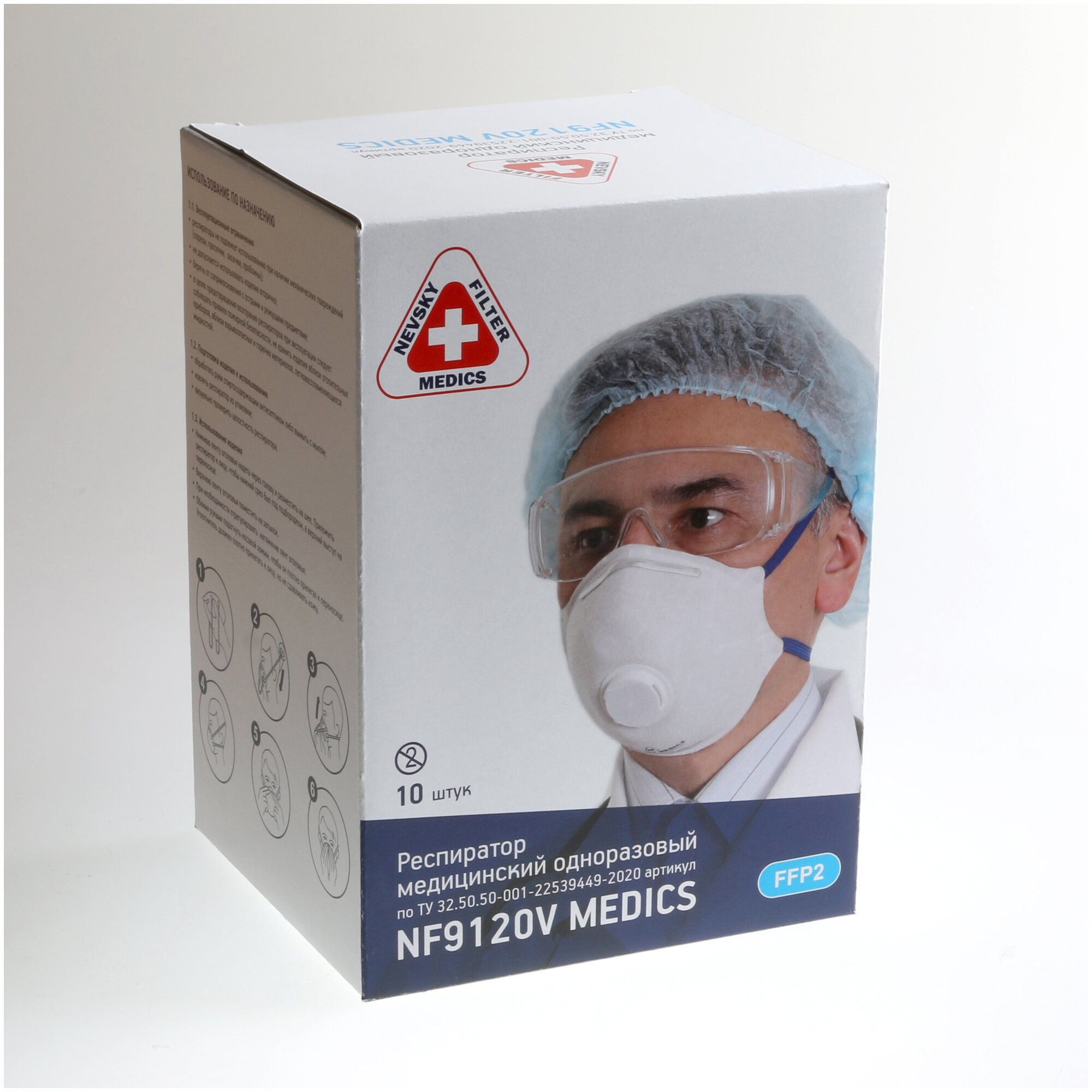 10 цен на Медицинский респиратор Невский фильтр NF9120V MEDICS FFP2 NR D, 10 шт. 920103102403213000