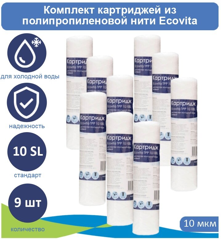 Картридж полипропиленовый Ecovita TPP 10 10SL для холодной воды - 9 шт. информация: