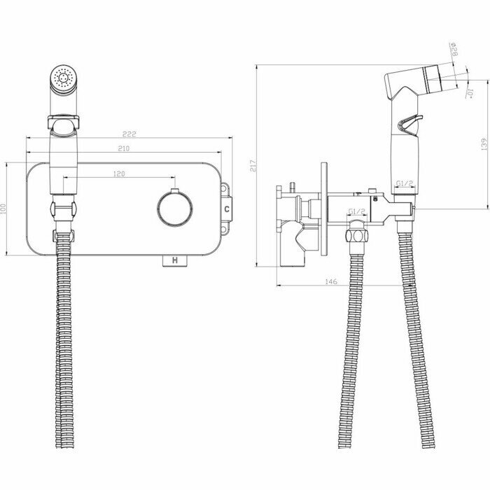 Смеситель Rossinka X25-59 термостатический с гигиеническим душем, встраиваемый информация: