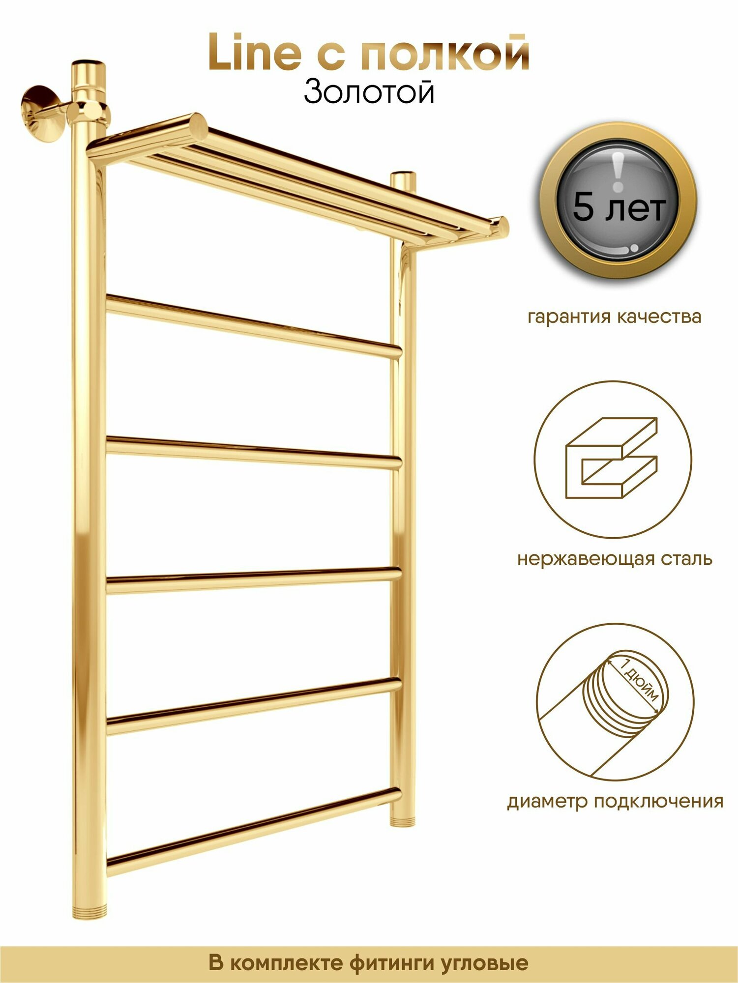 10 цен на Полотенцесушитель водяной Line с полкой 80/50 , Золотой INDIGO