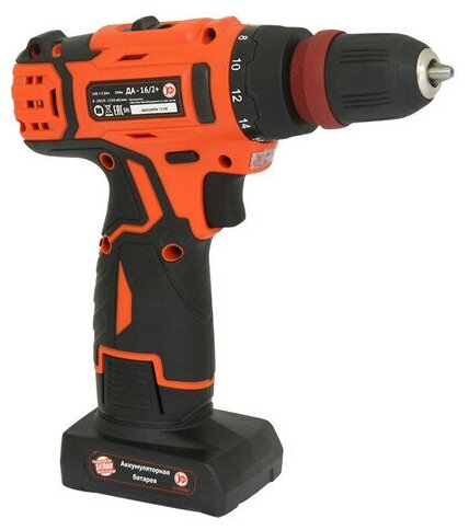 Аккумуляторная дрель Li-Ion "Калибр ДА - 16/2+" информация: