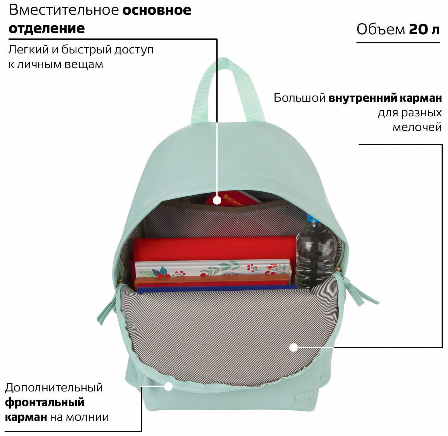 Отзывы на BRAUBERG Рюкзак молодежный, сити-формат, Селебрити, искусствен.кожа, бирюз, 41 х32 х14 см, 227101