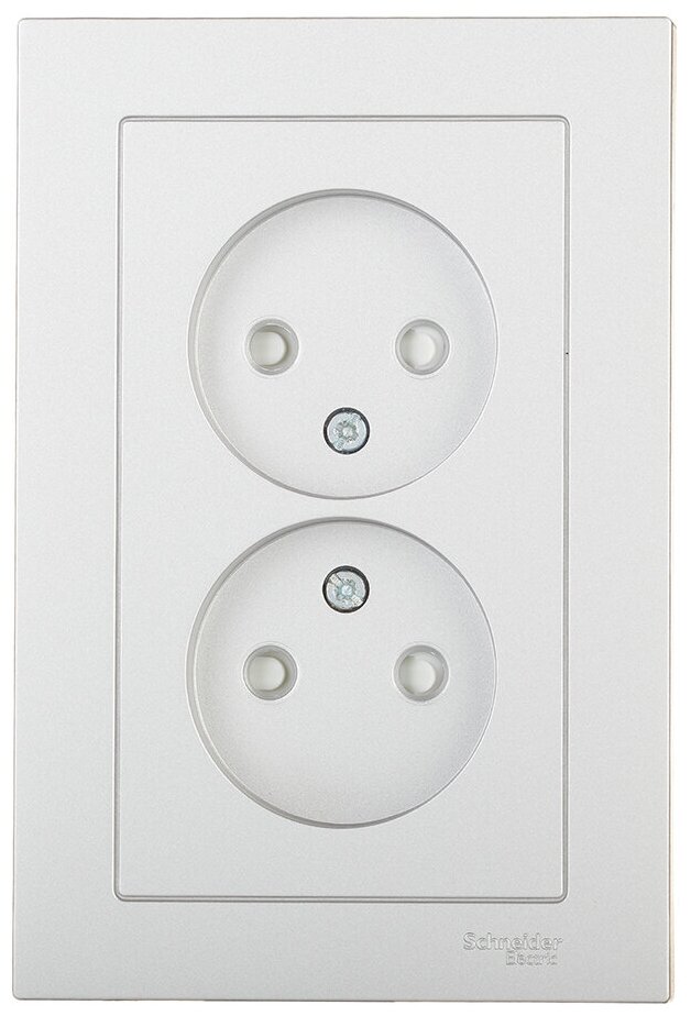 Розетка с рамкой Schneider Electric Atlas Design ATN000322 двойная скрытая установка алюминий без заземления со шторками 800 ₽