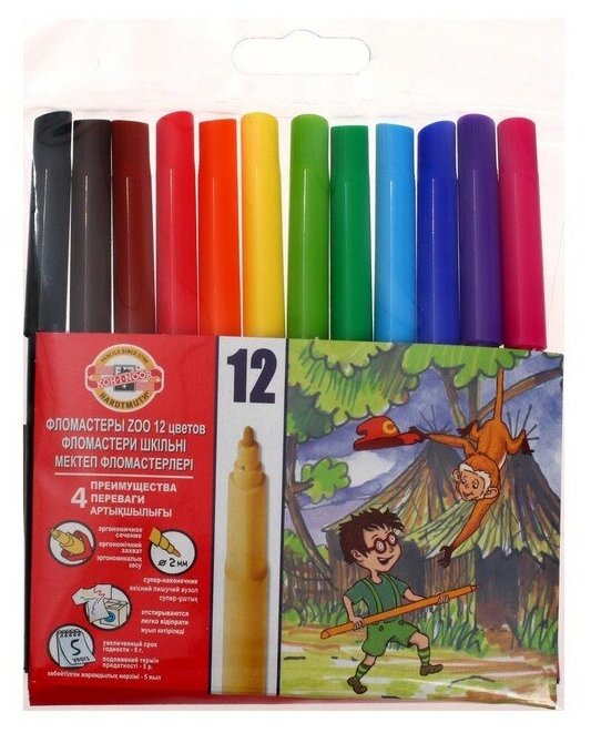 10 цен на Фломастеры Koh-I-Noor "Звери", 12цв., трехгранные, смываемые, ПВХ, европодвес