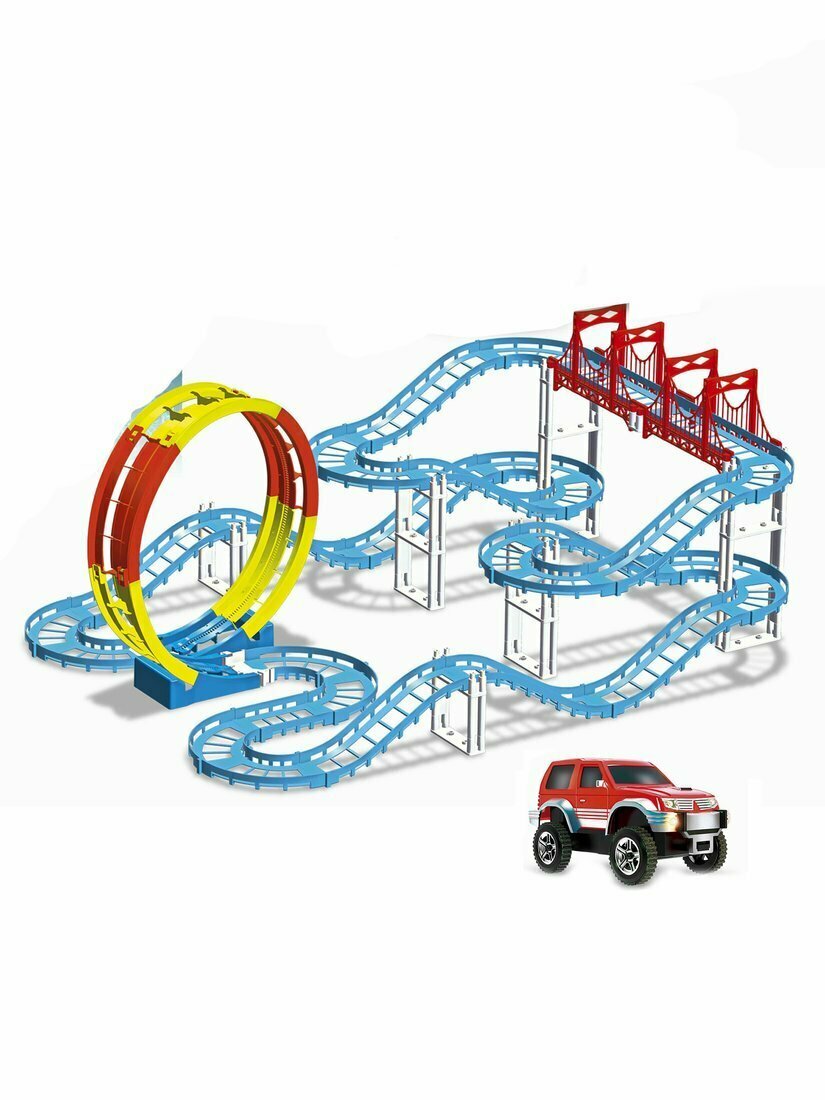 10 цен на Автотрек эл., 4 уровня, длина пути 530 см, свет, в комплекте деталей 60шт., элемент мертвая петля, машина эл., эл.пит.АА*1шт., Shantou Gepay, арт.SW7354