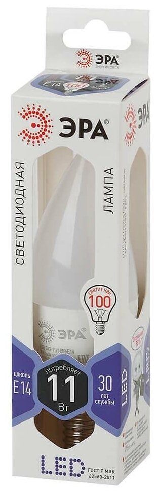 10 цен на ЭРА LED BXS-11W-860-E14 ЭРА (диод, свеча на ветру, 11Вт, хол, E14) (10/100/2800)