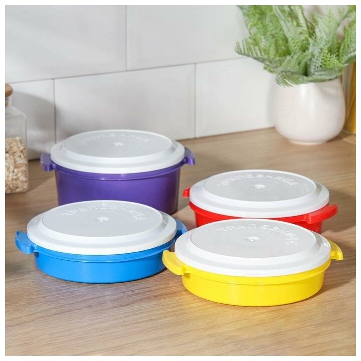 Набор контейнеров пищевых 4 шт 0,6; 0,6; 0,6; 1л "Трапезница" круг, цвет микс 1447076
