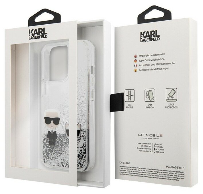 Отзывы на Чехол CG Mobile Karl Lagerfeld Liquid glitter Karl & Choupette Hard для iPhone 13 Pro Max, цвет Серебристый (KLHCP13XGKCS)