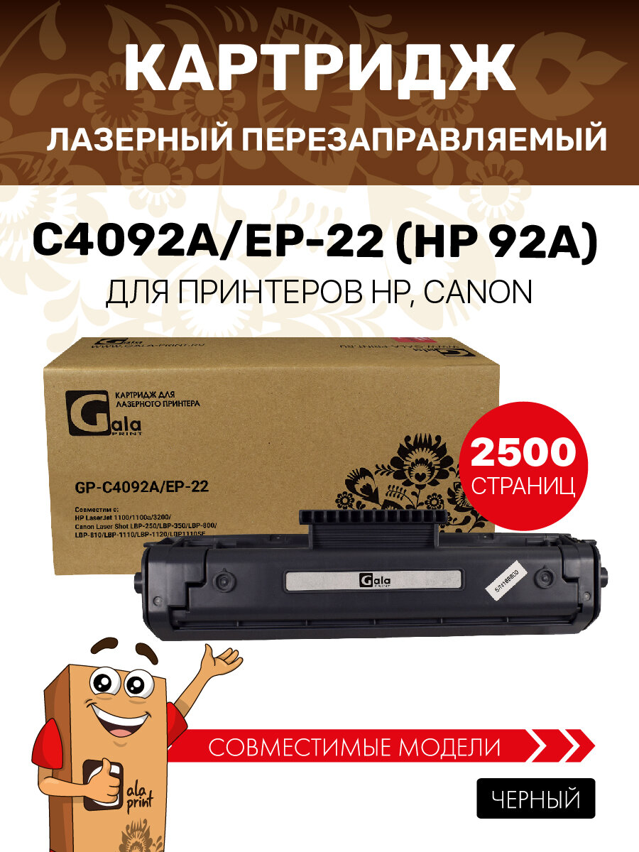 10 цен на Картридж GP-C4092A, EP-22 для принтеров HP LJ 1100, 1100A, 3100, 3200, 1100ASE, 1100AX, Canon LBP-800, 810, 1120, 22X 2500 копий GalaPrint