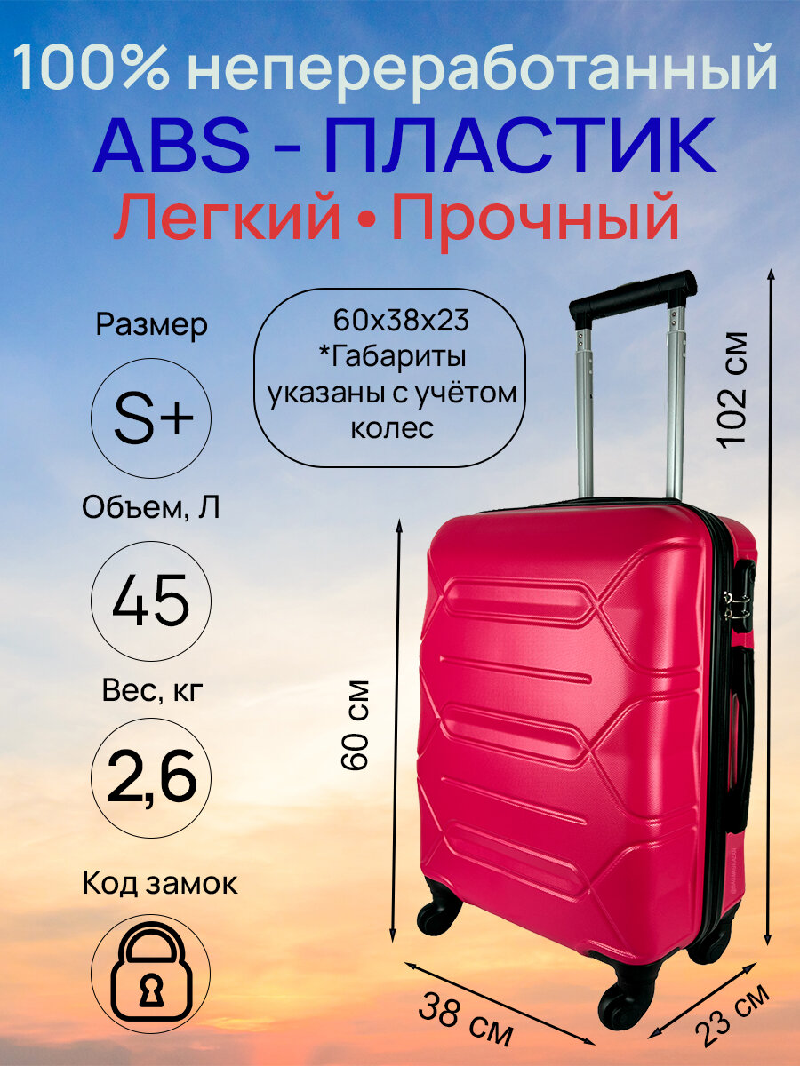 10 цен на Чемодан, Размер S+, 45 литров, Габариты: 60x38x23, кодовый замок, 4 колеса, цвет: Фуксия