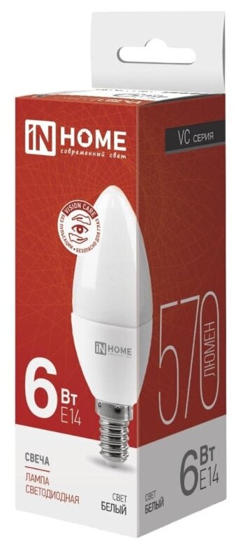 Светодиодная лампа IN HOME LED-СВЕЧА-VC 6Вт 230В Е14 4000К 480Лм 4690612020396