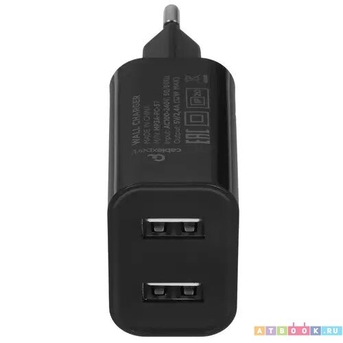 Сетевое з/у + DАТА кабель Cablexpert MP3A-PC-37 USB 2 порта 2.4A черный + кабель 1м Type-C 439 ₽