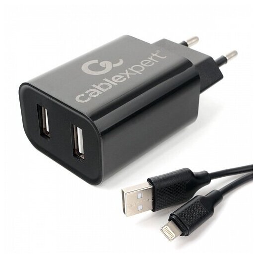 Cablexpert Адаптер питания USB 2 порта, 2.4A, черный + кабель 1м lightning MP3A-PC-36 информация: