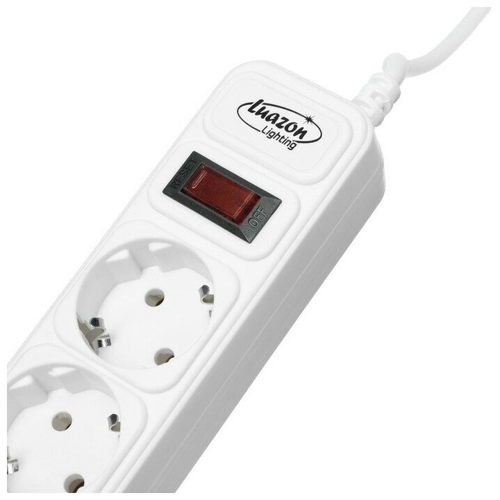 Сетевой фильтр Luazon Lighting, 4 розетки, 1.0 м, 2200 Вт, 3 х 0.75 мм2, 10 A, 220 В, белый