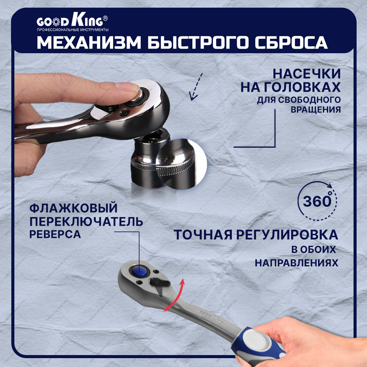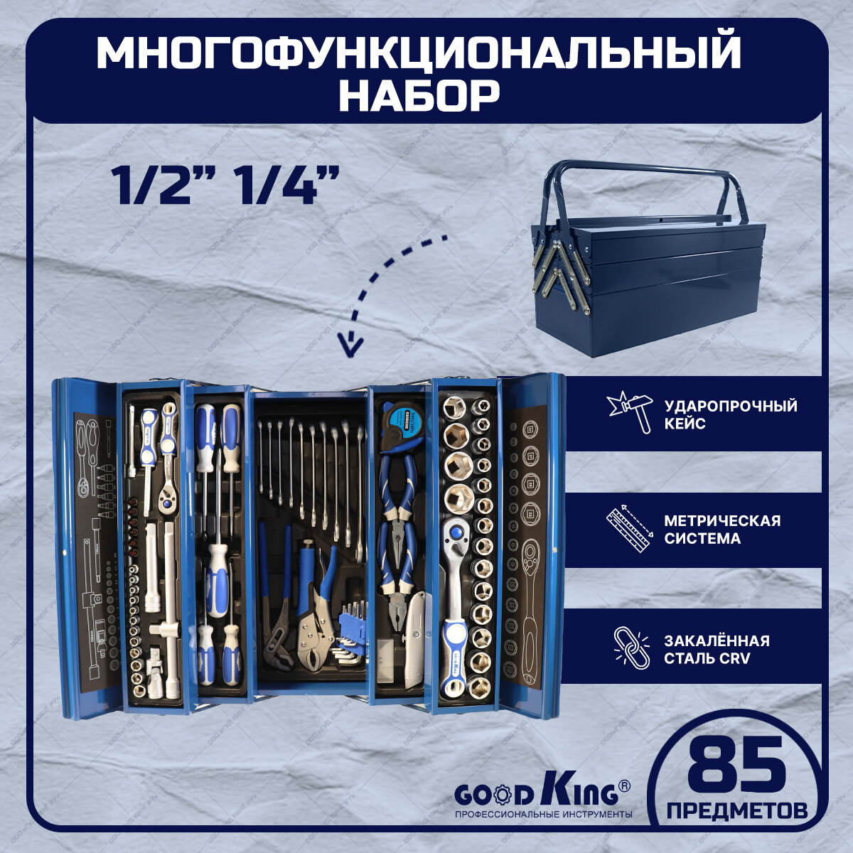 Набор инструментов 85 предметов 1/2, 1/4 трещотка 72 зубца GOODKING M-10085, набор торцевых головок, гаечных ключей, набор для авто, для дома
