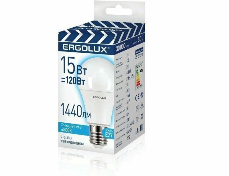 Лампа светодиодная 15Вт A60 E27 4500K 220В ERGOLUX - 10 штук! информация: