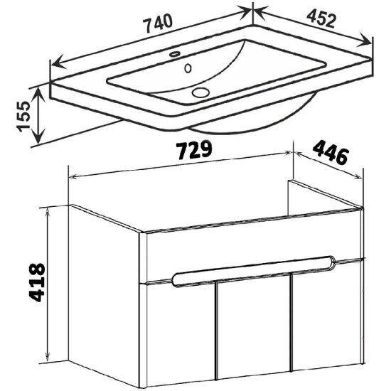 Тумба под раковину Runo напольная 2 ящика (под умывальник Omega 75) Парма 75 (00000001141) 17 570 ₽