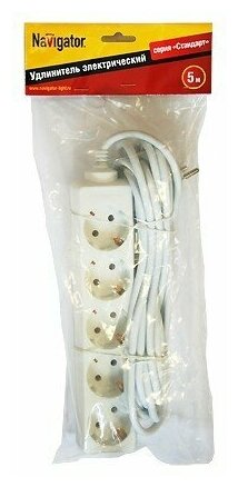 Удлинитель бытовой Navigator 94 187 б/выкл, 5 розеток, с зазем, 5 м