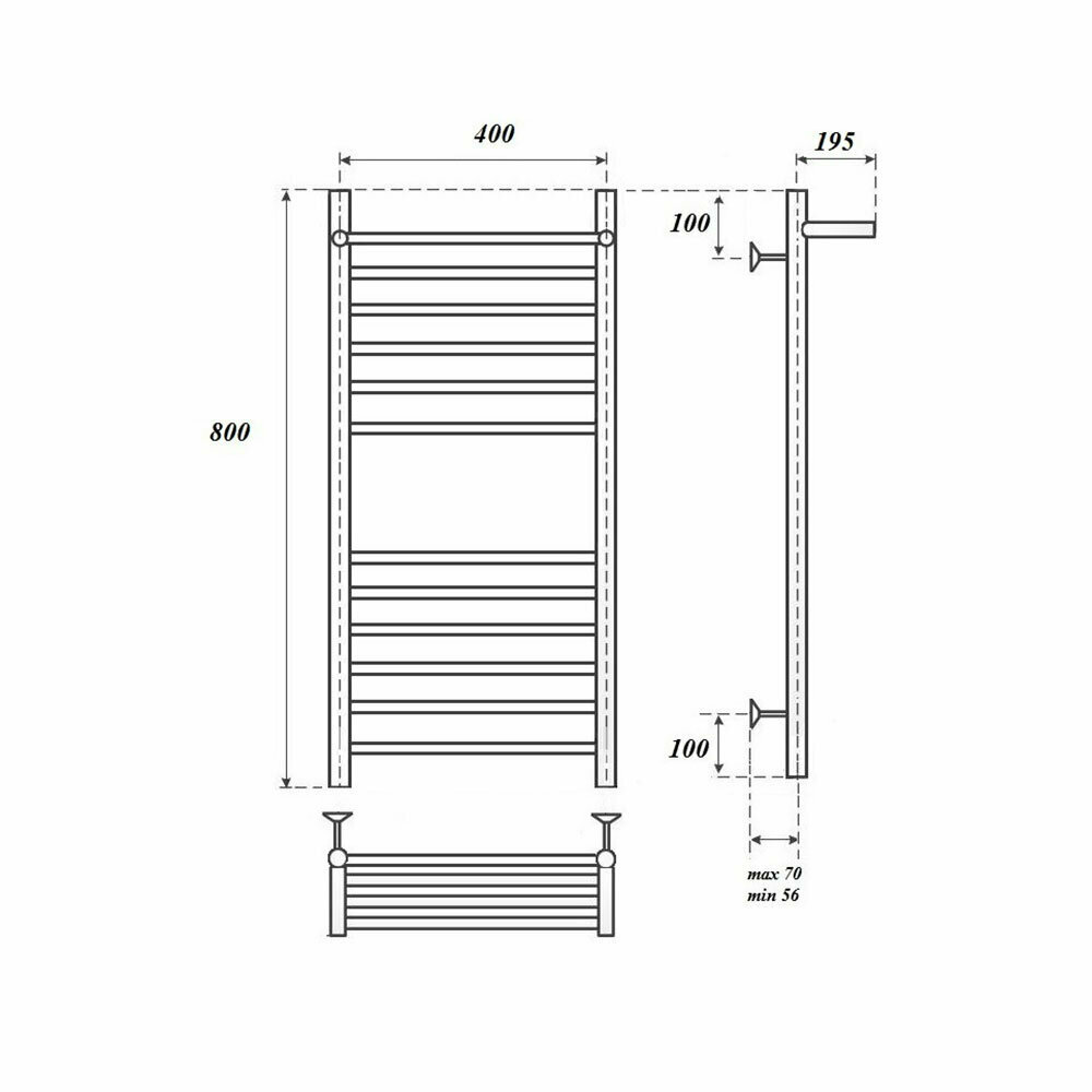 Полотенцесушитель Водяной узкий с полкой Di Kron, модель Premium-T 800х400 боковое подключение 50 см слева угловое