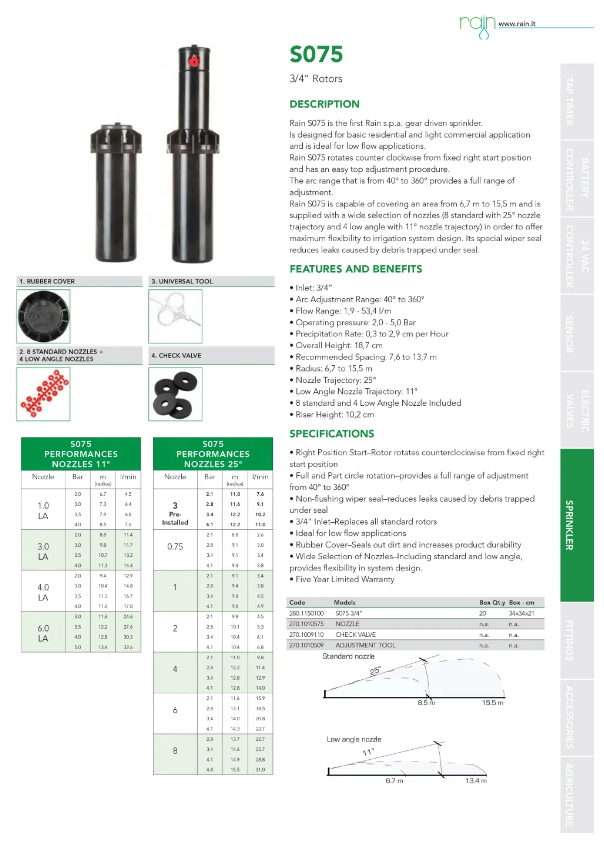 Разбрызгиватель Rain S 075 3/4'' радиус 14 м информация: