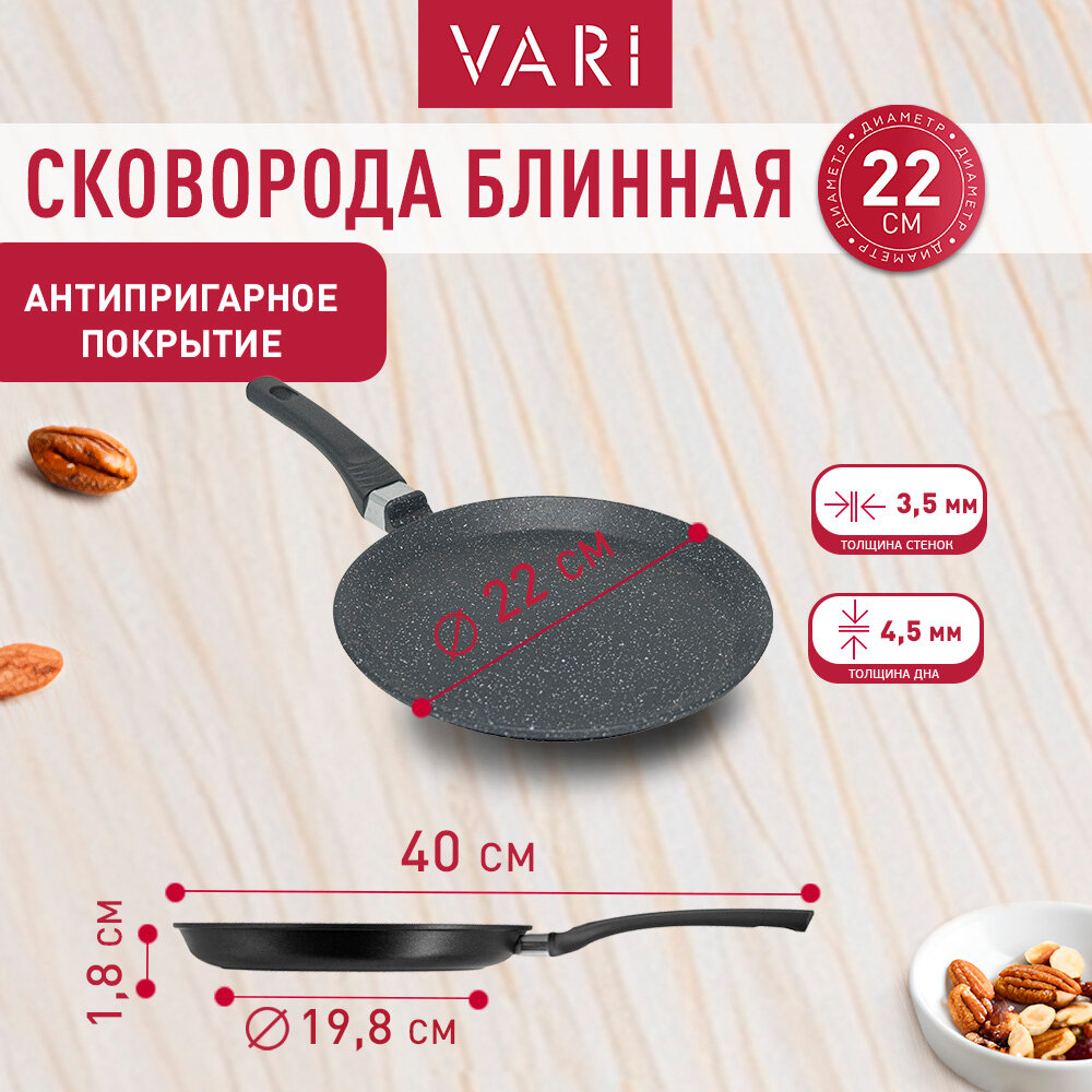 10 цен на Сковорода блинная VARI "Классическая каменная" литая, черная, с антипригарным покрытием